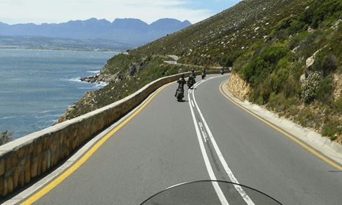 This is Clarence Drive between Rooi Els and Gordon’s Bay and it takes one along the edge of the sea for the entire distance with numerous stopping places to take in the beauty and allow cameras to capture it forever. The photograph below was taken during a Harley Davidson trip that took in Clarence Drive a few years ago but nothing has changed and it’s as spectacular as ever.